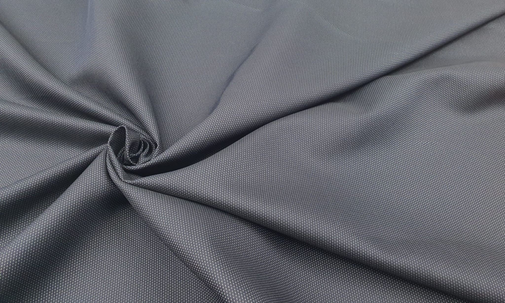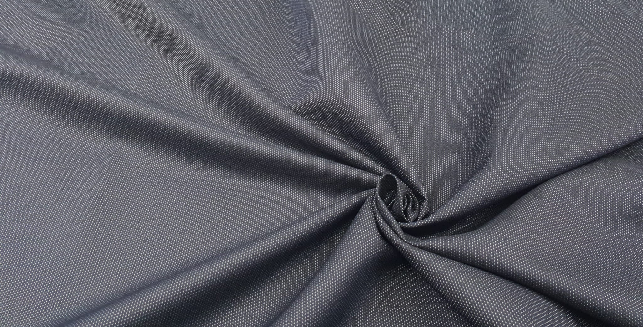 Dwustronna bawełna z nylonem w minimalistyczne groszki charakteryzują się dużą wytrzymałością oraz lekką elastycznością. Bawełna w połączeniu z nylonem sprawia, iż materiał w małym stopniu gniecie się oraz posiada elegancki wygląd. Tego typu tkaniny świetnie sprawdzą się na żakiety spodnie czy też kostiumy. Kropki o wielkości 1 mm rozmieszczonych co 3mm