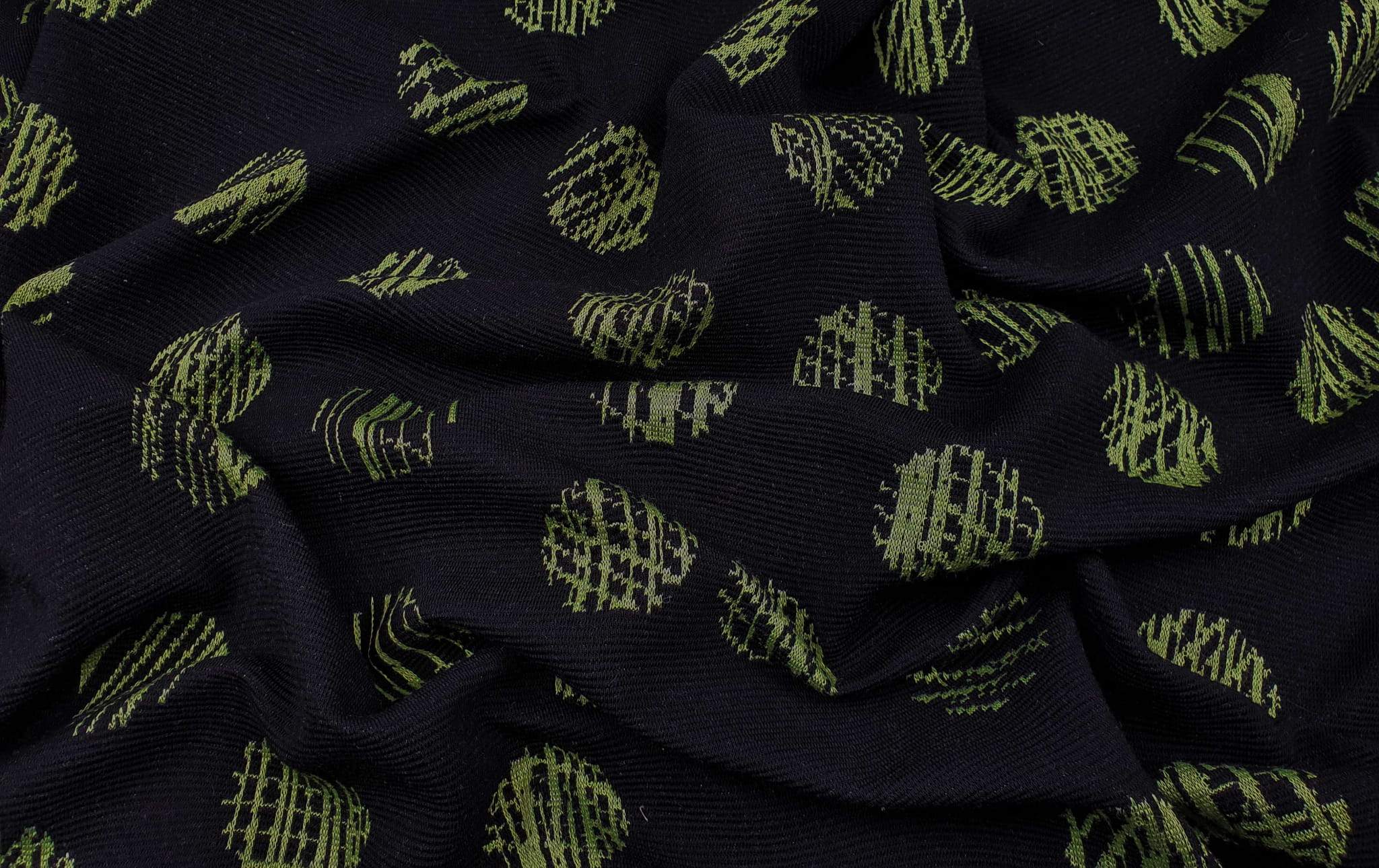 Dzianina Wzór Zielone Kółka Na Czarnym Tle 5EOOTTO3734/G
