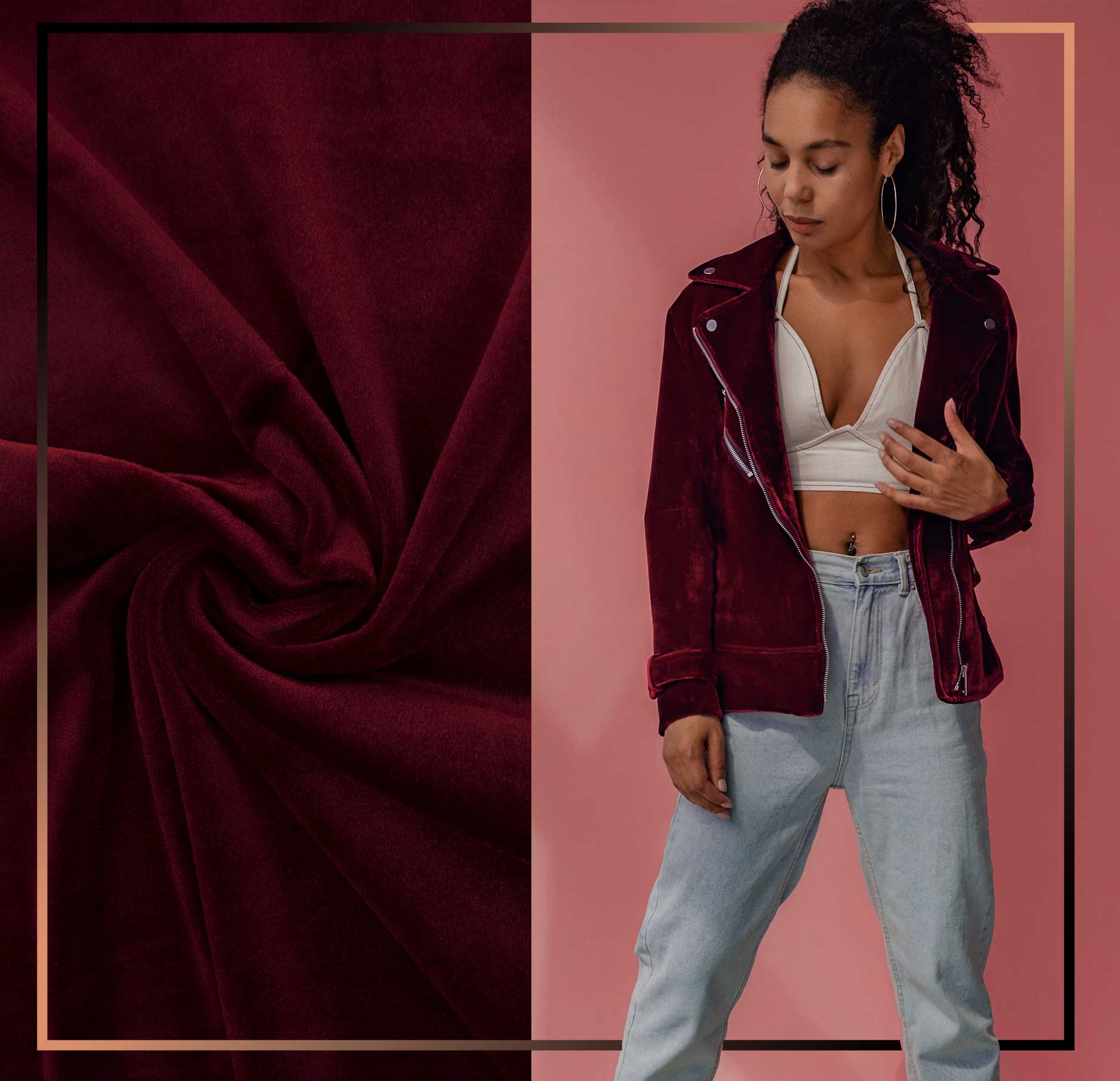 Nieelastyczny Welur Aksamit 225g/m² Bordo