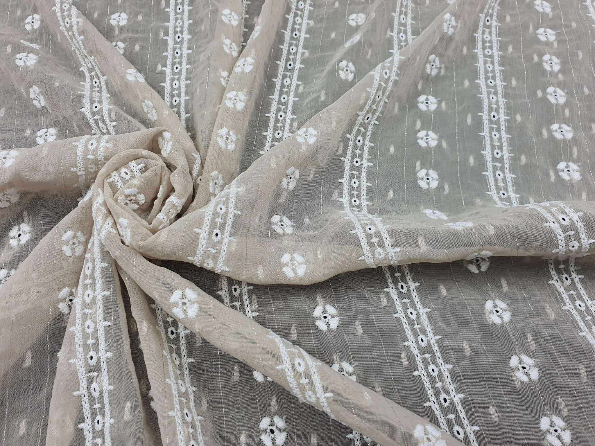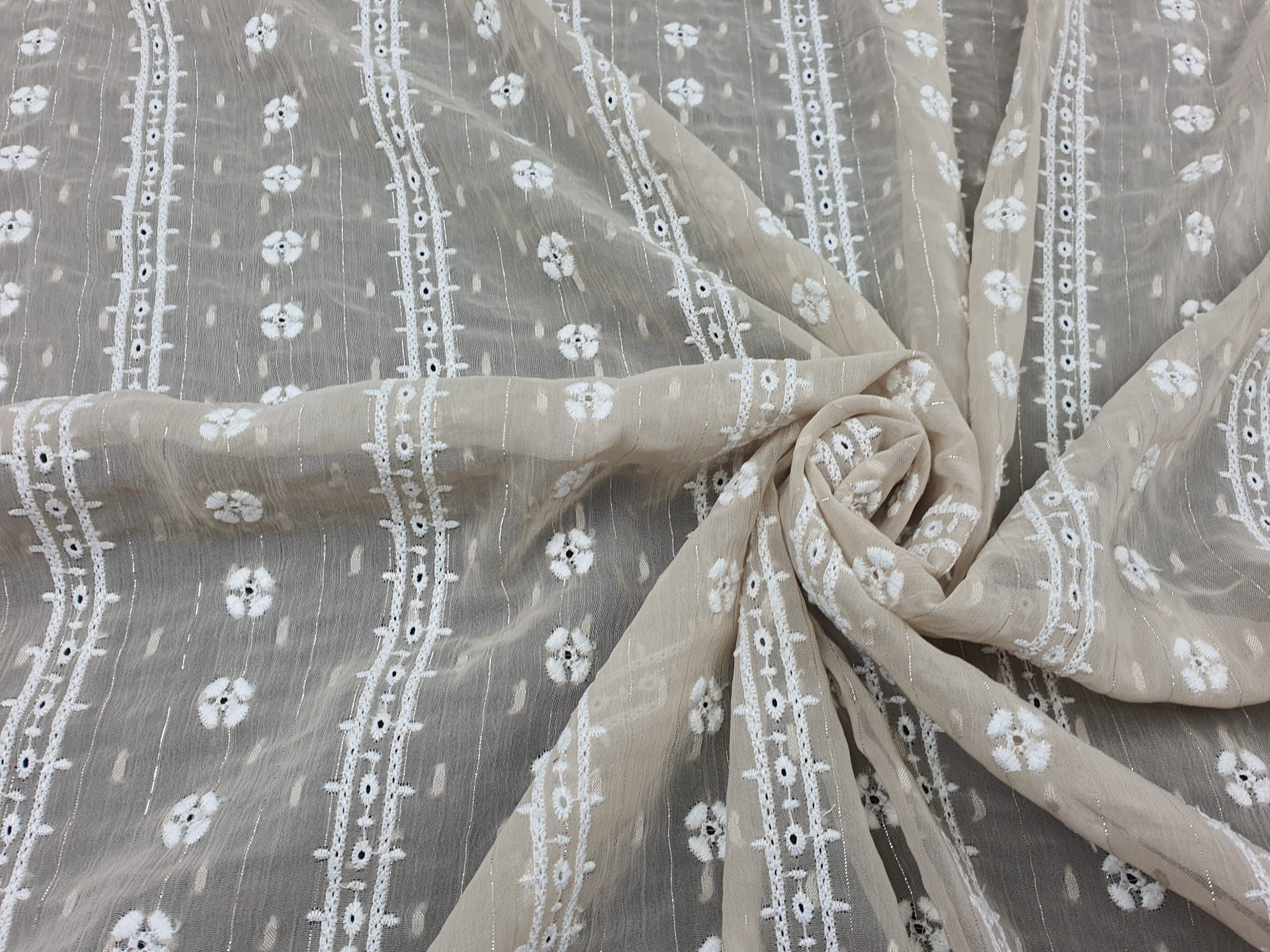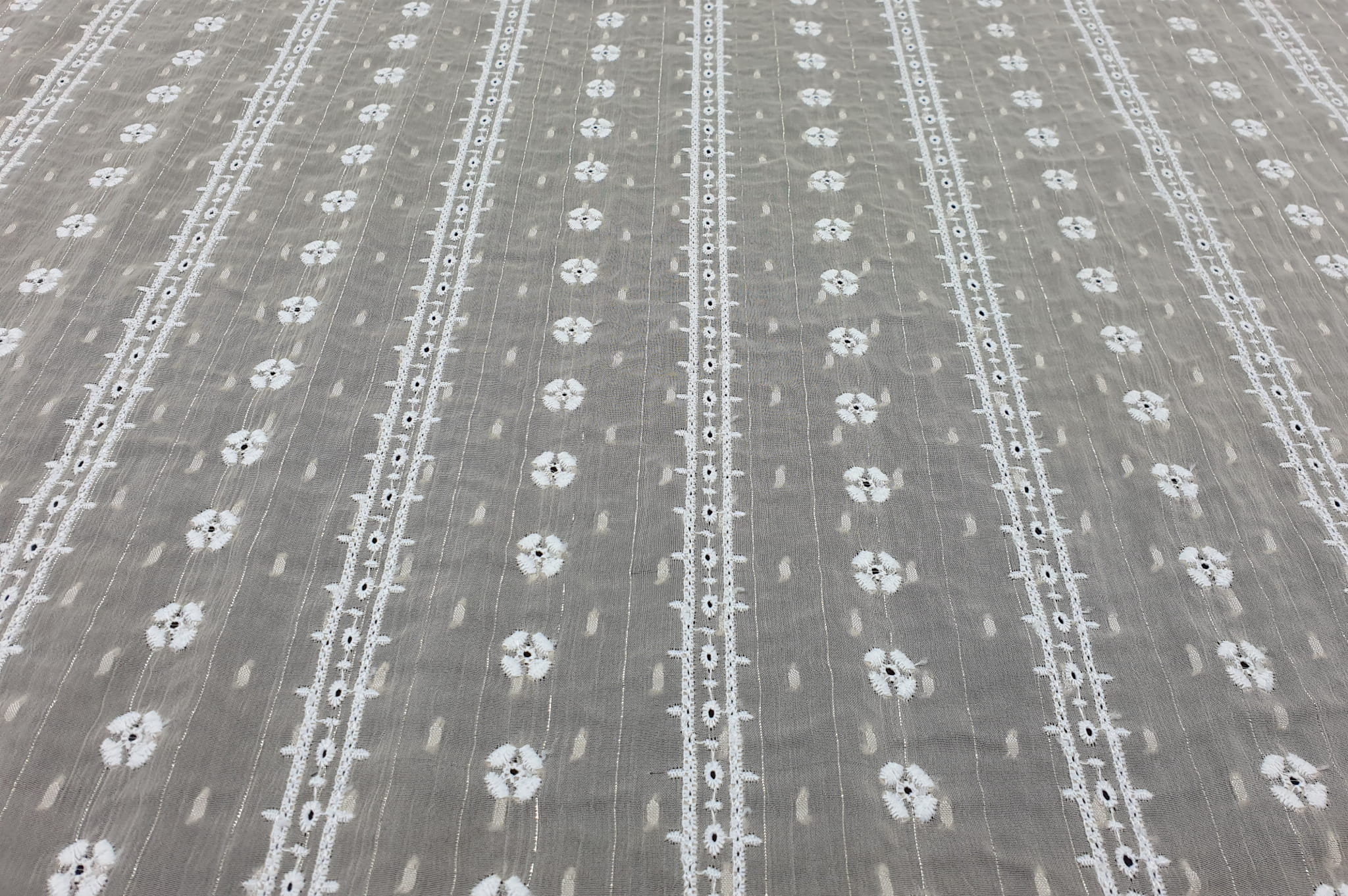 SZYFON DRUKOWANY HAFTOWANE BIAŁE KWIATY BE9587GRAYPIN