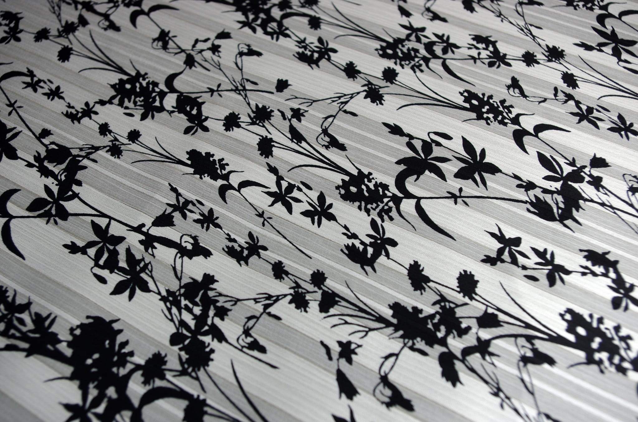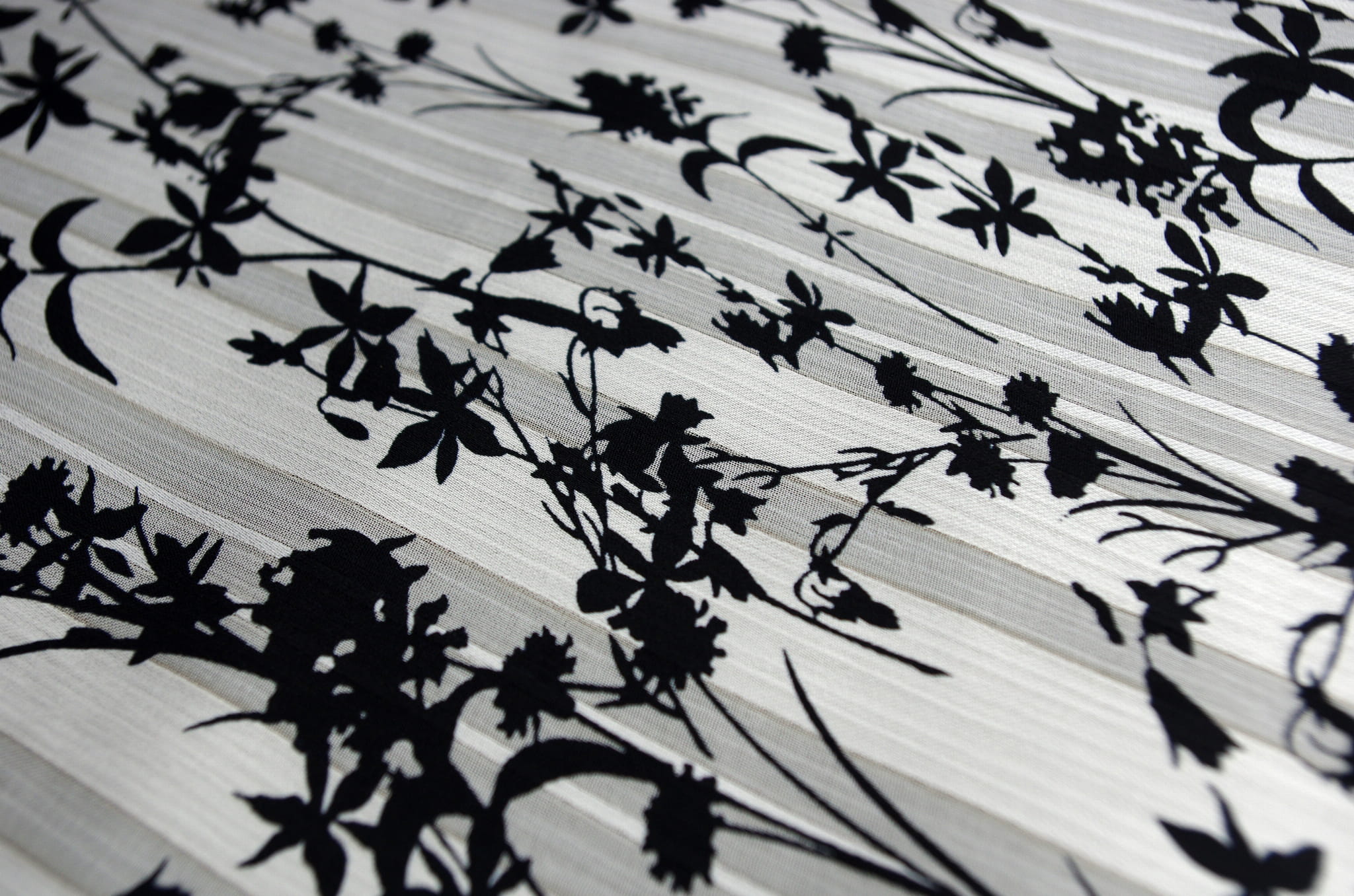 Na prezentowanej tkaninie zostały zastosowane paski satynowe, które uwidaczniają się w zależności od padania światłą. Im więcej warstw będziemy nakładać na siebie tkaniny, tym paski staną się mniej widoczne, a kolor bardziej intensywny.