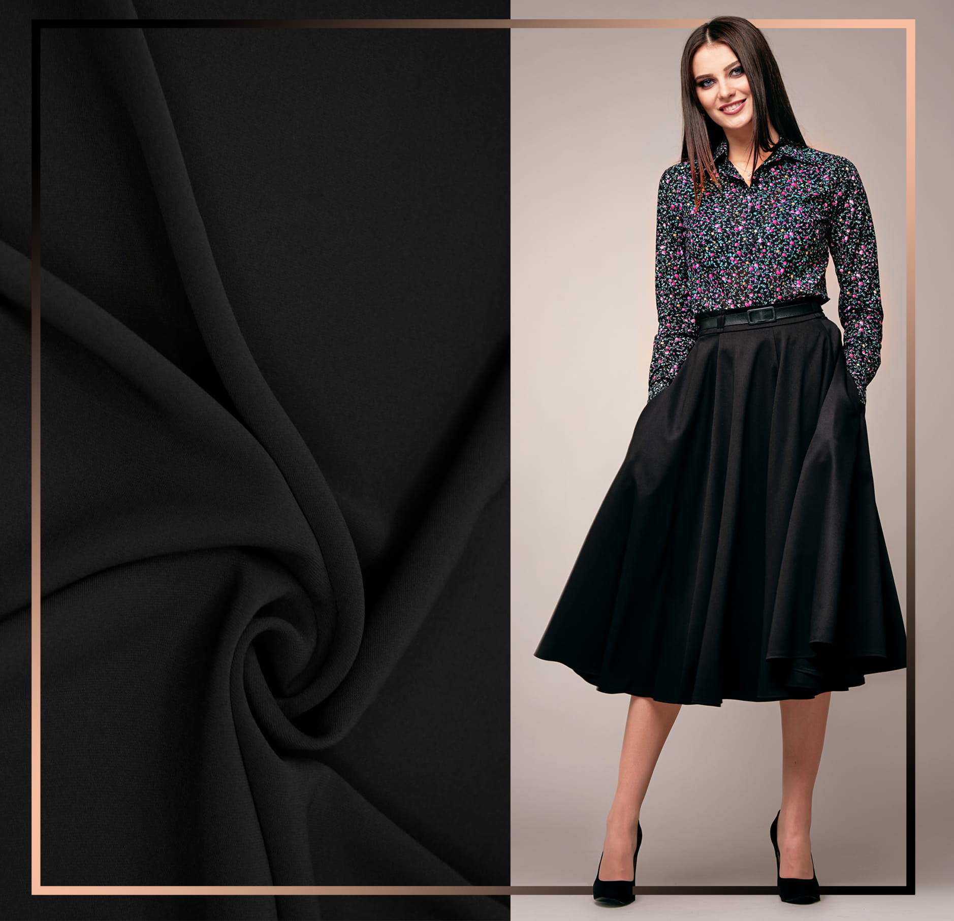 Proponujemy piękną tkaninę odzieżową NICOLA, w różnorodnej kolorystyce. Tkanina NICOLA jest miła w dotyku i chwycie, nie gniecie się, ładnie się układa oraz jest łatwa w szyciu. W aktualnych trendach znajdzie swoje wszechstronne zastosowanie, zarówno w odzieży casualowej oraz eleganckiej.