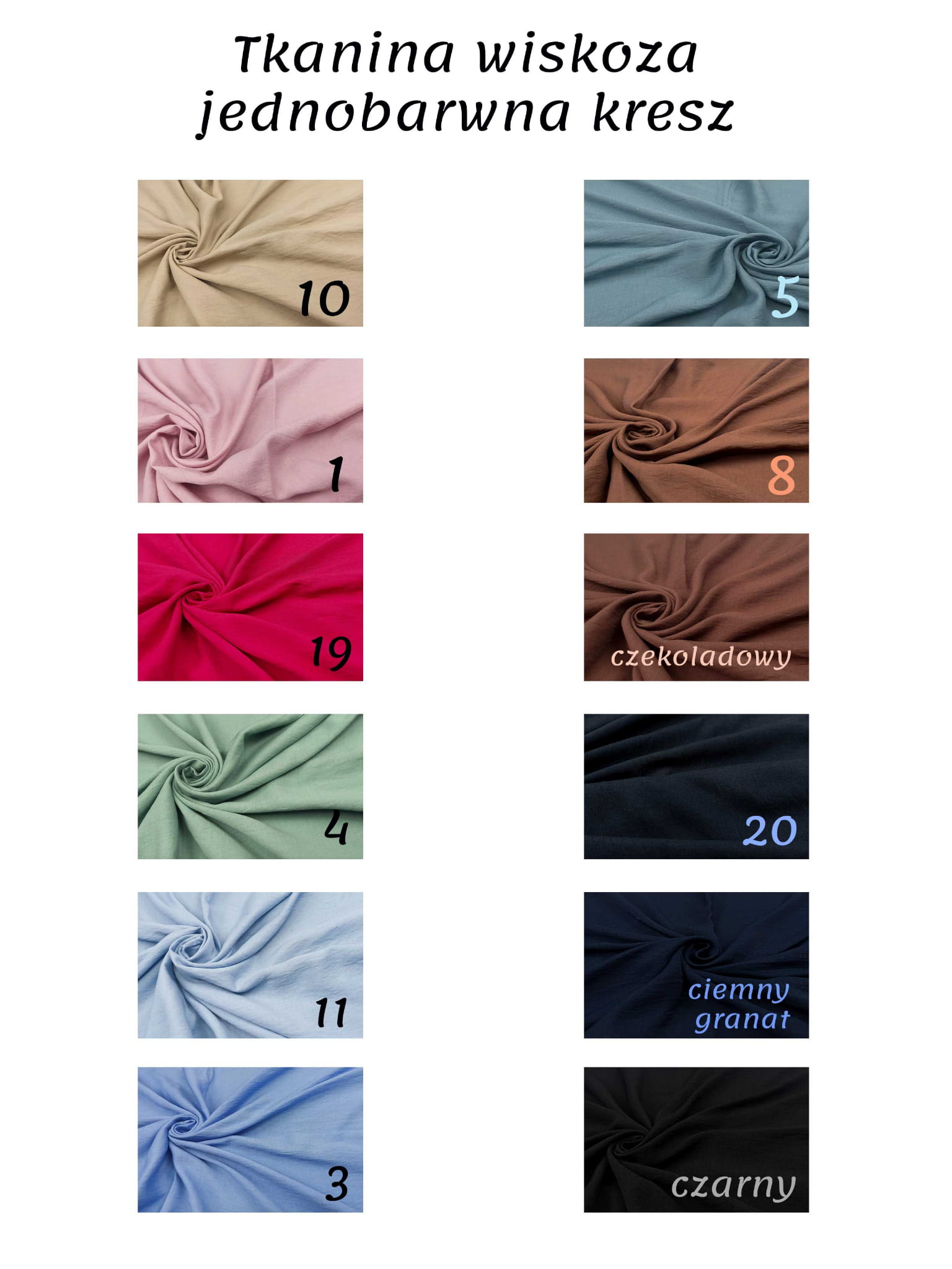 rodzaj tkaniny wiskozowej, która została poddana procesowi kreszowania, czyli trwałego gniecenia lub marszczenia. Dzięki temu materiał zyskuje charakterystyczną, przestrzenną fakturę, która jest jednocześnie elegancka i bardzo praktyczna.
