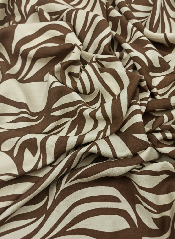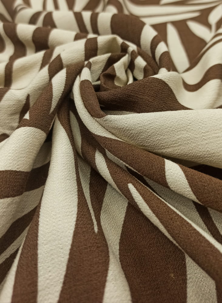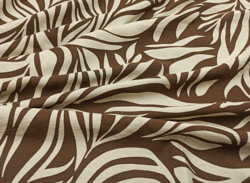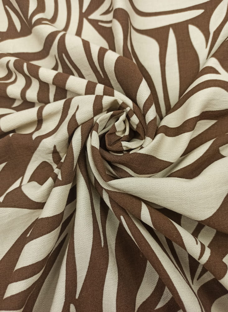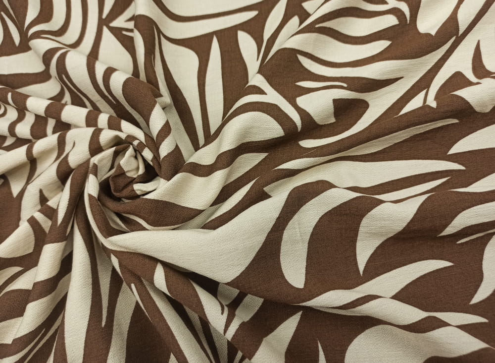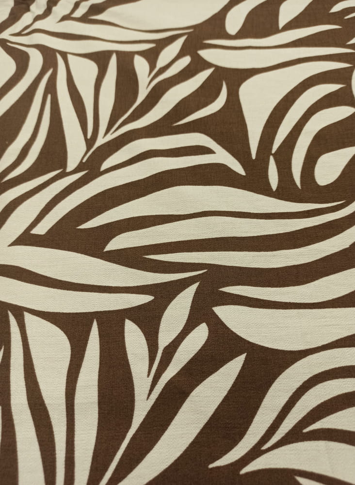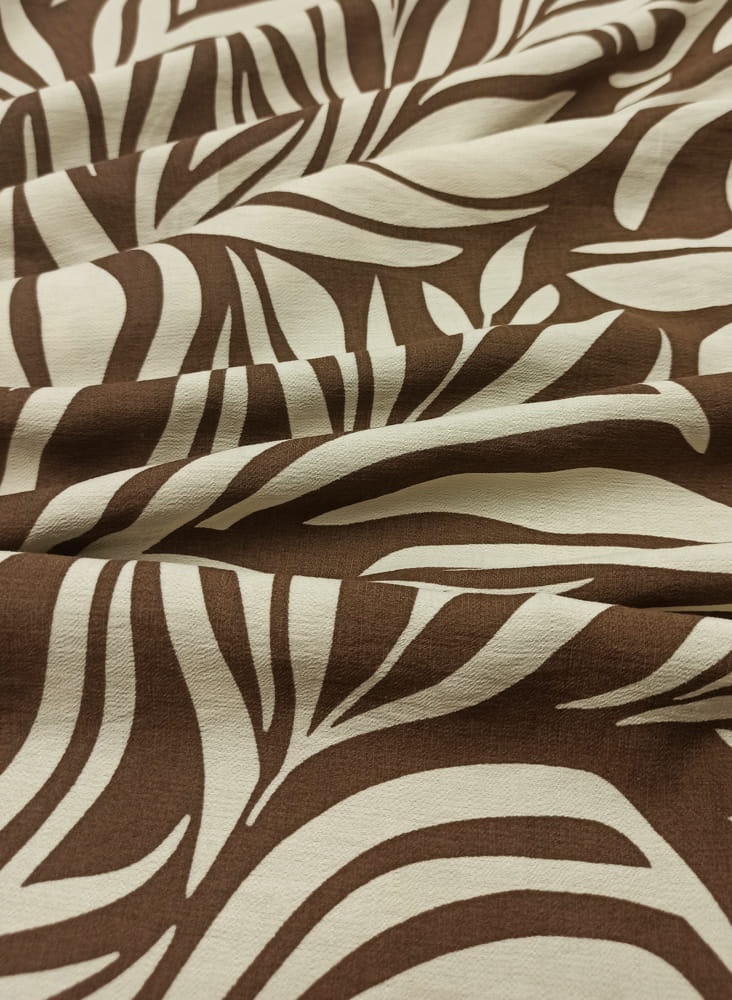 TKANINA WISKOZA KRESZ DRUK JASNO BEŻOWE LIŚCIE NA BRĄZIE ID5012206/003