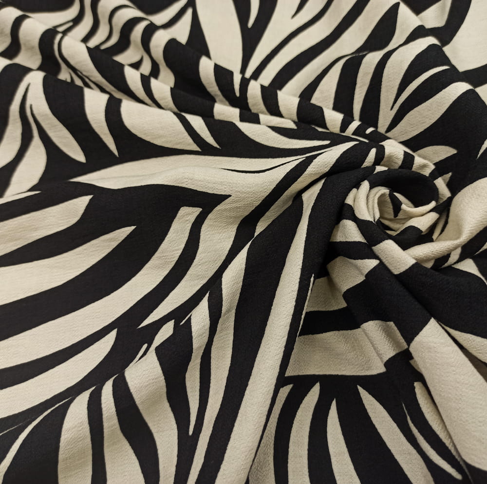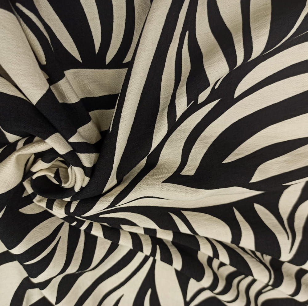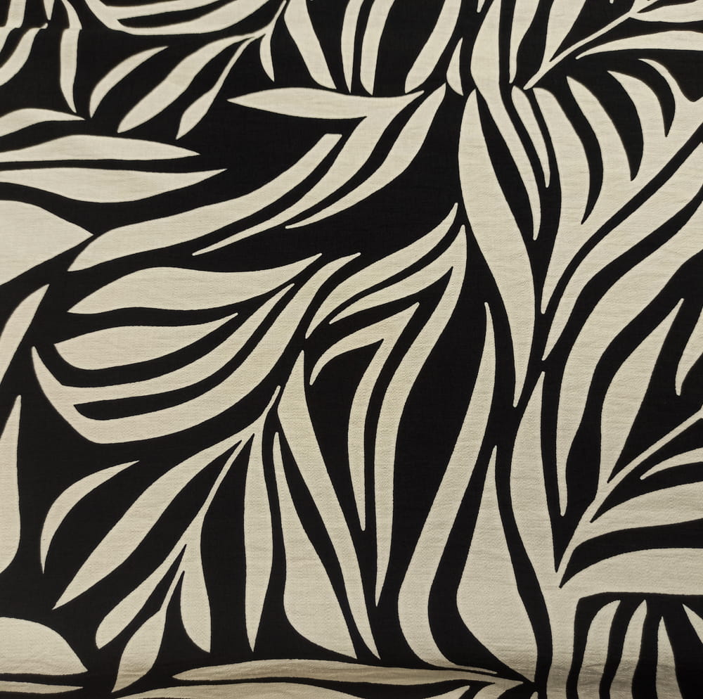 TKANINA WISKOZA KRESZ DRUK KREMOWE ECRU LIŚCIE NA CZARNYM TLE ID5012206/001