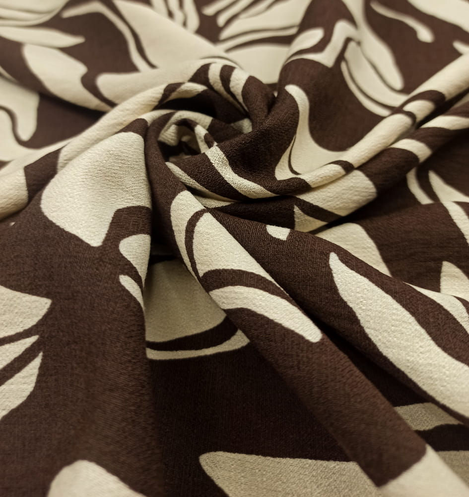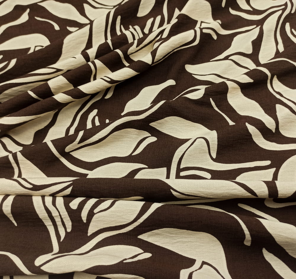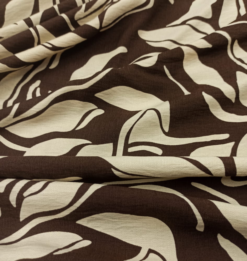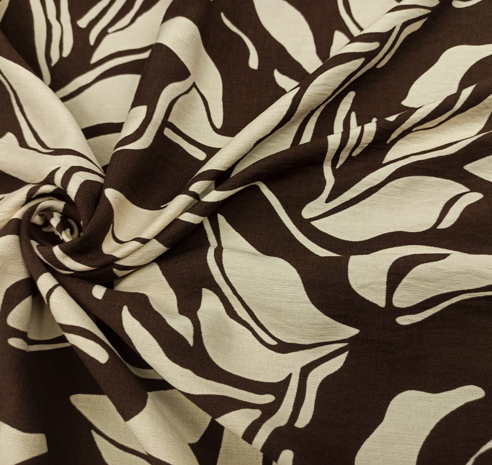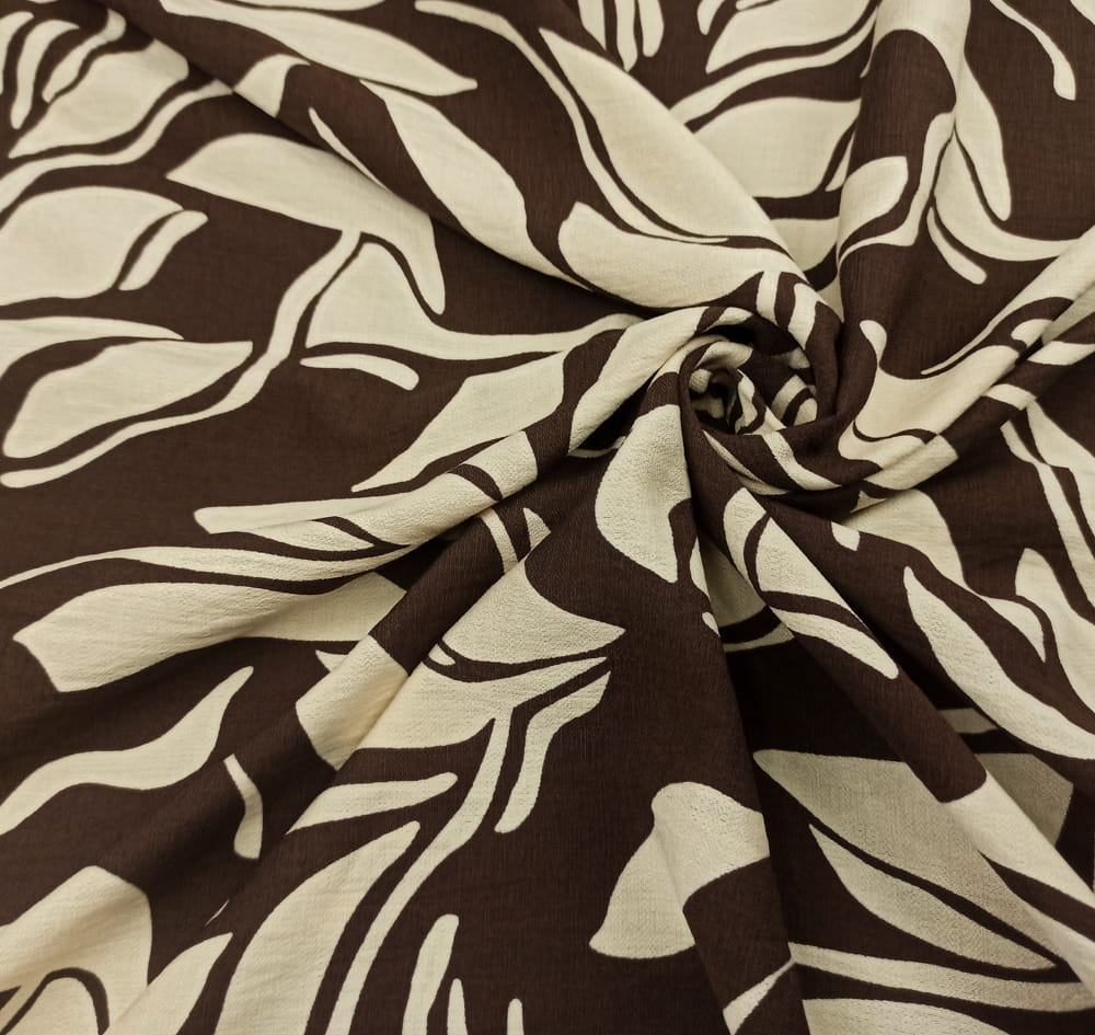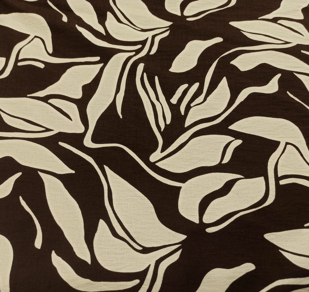 TKANINA WISKOZA KRESZ WZÓR JASNO BEŻOWE LIŚCIE NA CZEKOLADZIE ID5012208/002