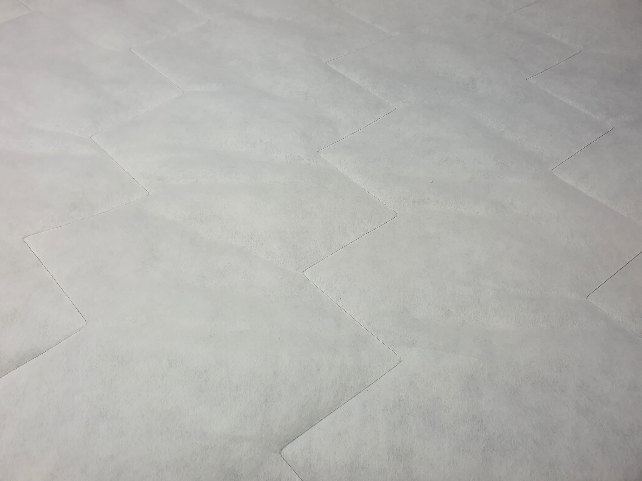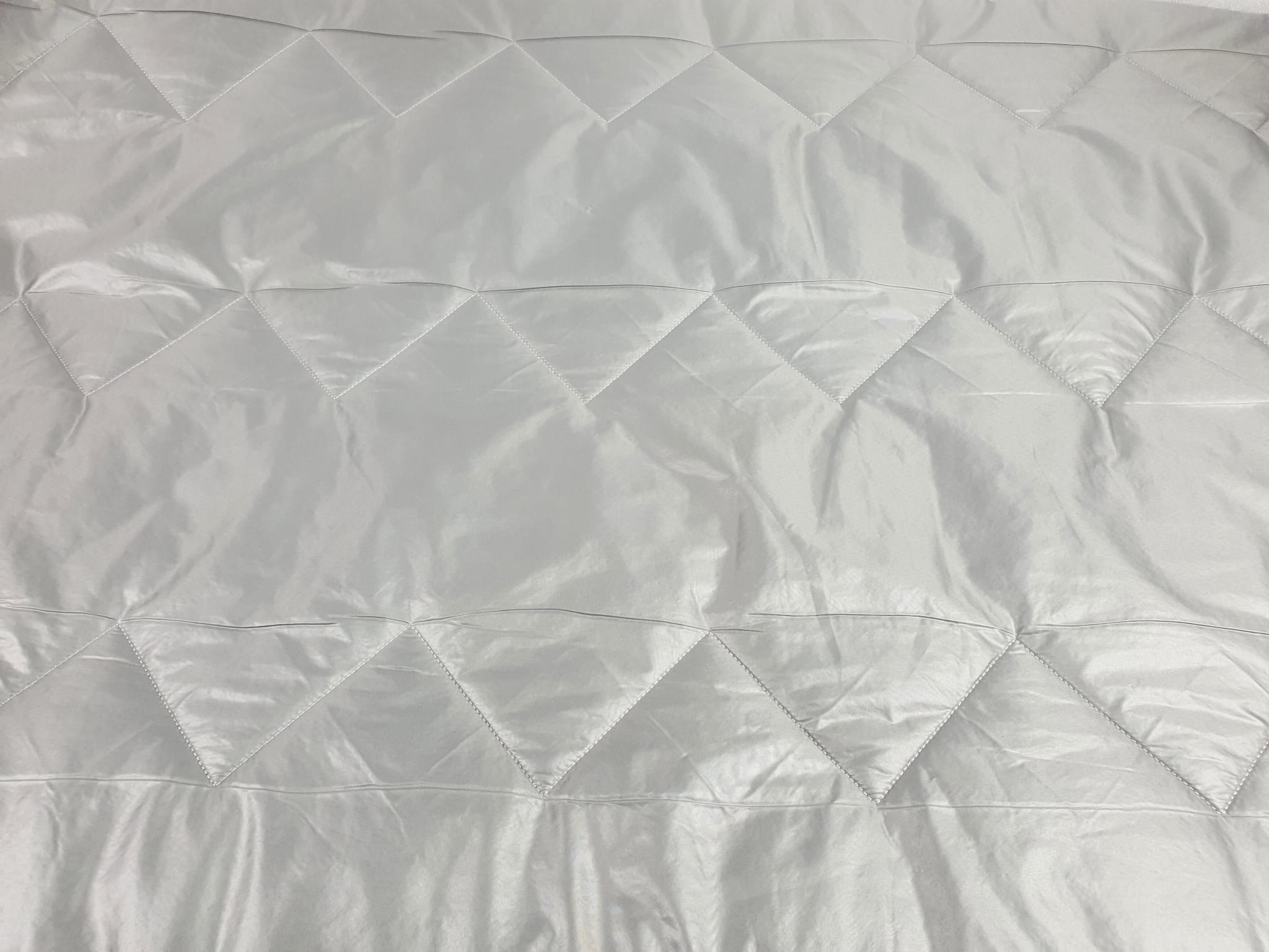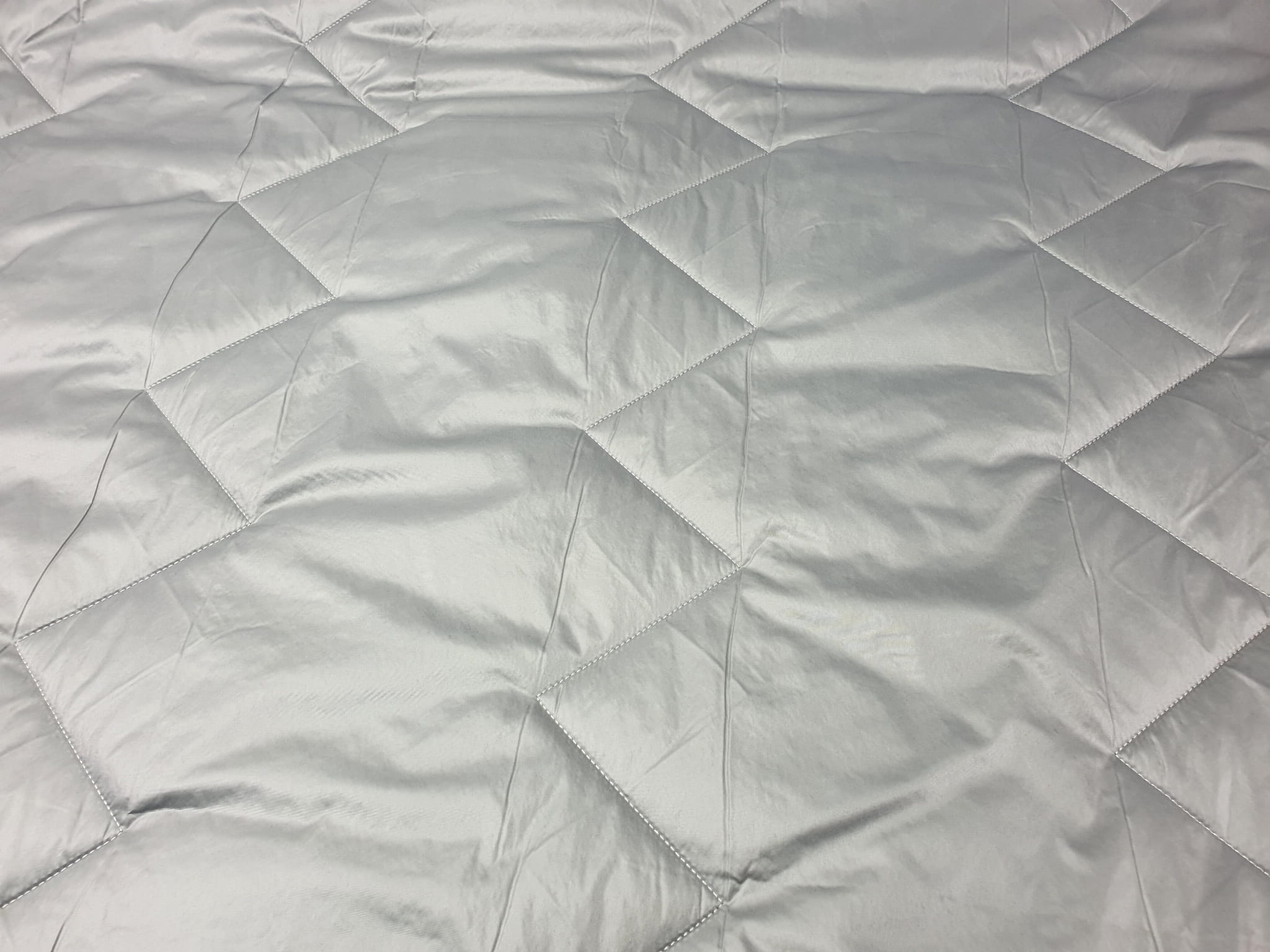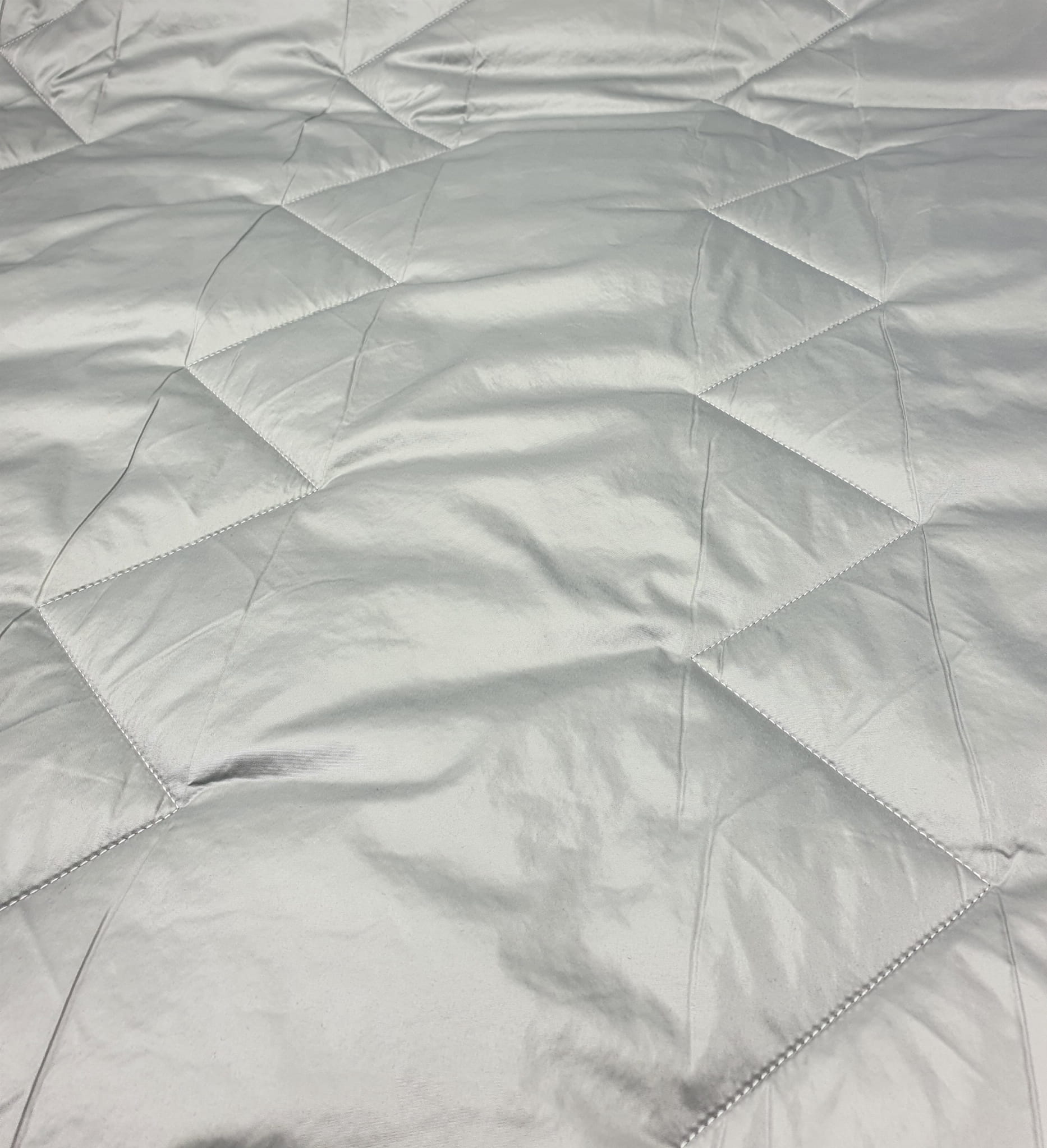 Prezentowana tkanina jest lekko błyszcząca, ciepła w najmodniejszym pikowanym wzorze- trójkąty w odcieniu szarości.