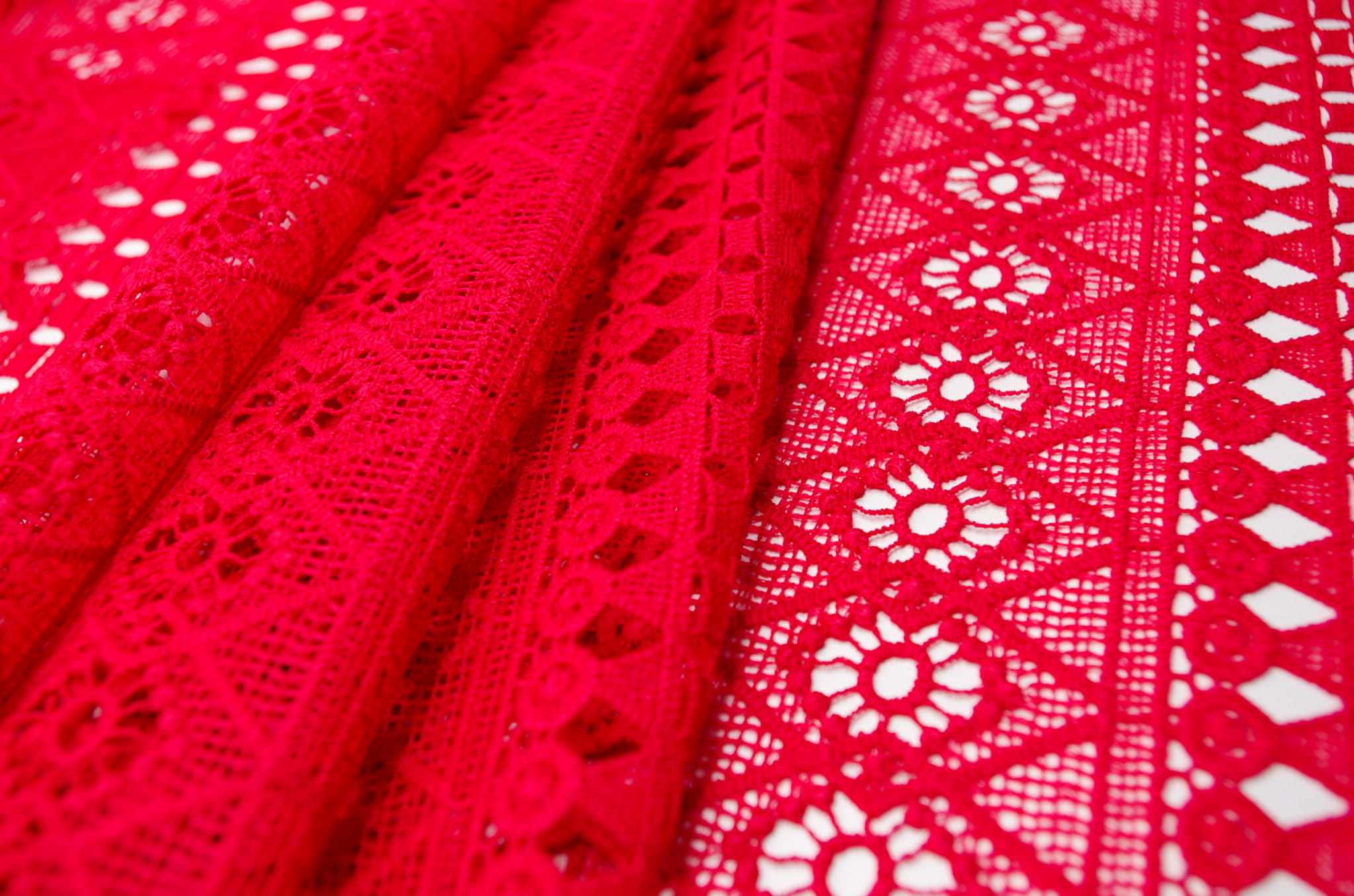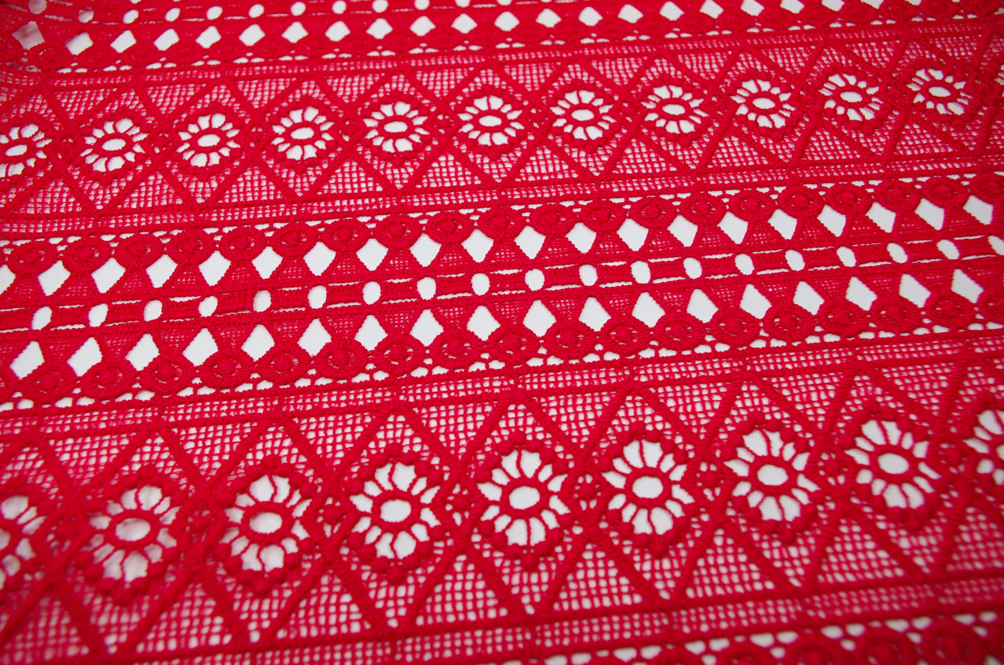 Tkanina na Sukienki Ozdobna Gipiura Czerwona ESPA1026/RED